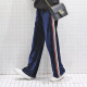 17新时尚新款金丝绒阔腿裤女春秋欧美复古显瘦直筒长裤白边运动裤