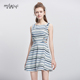 2017春装新款女装时尚条纹印花收腰a字裙子显瘦镂空无袖连衣裙夏