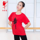 红舞鞋舞衣T恤文化衫上衣短袖舞蹈衣服女成人儿童跳广场舞练功服