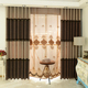 定制现代中式成品窗帘简欧绣花棕色印花条纹遮光窗帘客厅卧室阳台