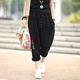 原创设计民族风大码女休闲裤纯棉松紧腰拼色撞色女式7分裤哈伦裤