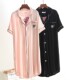 夏季睡衣女欧美短袖中长款莫代尔纯棉开衫睡裙v领宽松大码家居服