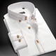 夏季男士立领长袖衬衫韩版丝光棉白色衬衣商务修身免烫纯棉男装潮