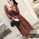 ◆ANNA◆2017春装新款 V领复古印花长袖连衣裙碎花长裙子春秋女装