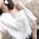 NORA Stduios 设计师款立体流苏羽毛拼接女人味斜肩雪纺上衣女