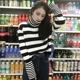 秋冬卫衣女韩版潮学生条纹长袖T恤小高领套头加绒加厚短款上衣服