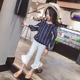 侧条纹女童打底裤2017夏装新品儿童宝宝韩版条纹校服裤七分小脚裤