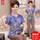 中老年女装夏装短袖T恤衫中年妇女大码套装妈妈装上衣+裤子两件套