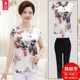 中老年女装夏装薄短袖T恤雪纺衫中年人宽松上衣40-50岁妈妈装套装