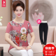 中老年女装夏装新款印花短袖T恤中年人夏季上衣40-50岁妈妈装套装