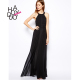 Haoduoyi 新款黑色长裙 性感露背交叉背带礼服裙开叉及地连衣裙潮