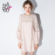 Haoduoyi2016秋新款 甜美精致镂空蕾丝拼接 灯笼袖宽松娃娃连衣裙