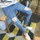 文艺青年男牛仔裤春夏季个性膝盖大破洞磨白九分裤嘻哈直筒下装