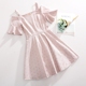 一字领露肩吊带连衣裙2017夏季新款甜美小清新翻边系带中长款裙子