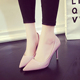2017春秋漆皮尖头高跟鞋8cm蓝色女士枪色粉红色亮面细跟浅口单鞋