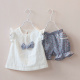 女童套装女童短袖套装2件套装纯棉韩版镂空蝴蝶结女童装儿童套装