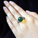 墨西哥5A蓝珀戒指 女款天然琥珀蜜蜡圆珠戒子s925银镀18K金配证书