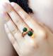 保真天然多米尼加蓝珀圆珠戒指琥珀戒子18K玫瑰金镶嵌配国检证书