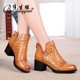 半生缘2016春秋网靴粗跟中跟网纱镂空女靴真皮时尚凉靴短靴单靴子