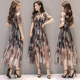 2017夏季新款露肩V领印花碎花雪纺连衣裙女中长款不规则收腰显瘦