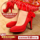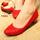 红色新娘婚鞋结婚鞋子旗袍鞋子新娘鞋闪亮坡跟