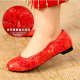 平底平跟结婚鞋子新娘鞋婚纱旗袍鞋婚庆鞋敬酒鞋大红色女单鞋