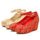红色金色坡跟新娘婚鞋结婚鞋子旗袍鞋子 婚鞋 新娘鞋子