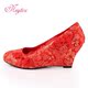 婚鞋 蕾丝婚鞋 低跟新娘婚鞋 新娘鞋 大码婚鞋 红色金色单鞋