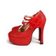 婚鞋 超高跟金色红色新娘鞋子 结婚鞋子交叉绑带玫瑰花款
