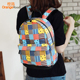橙路迷彩双肩包韩版背包学院风大学简约百搭英伦休闲中学生书包女