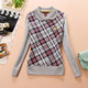 小熊维尼2017春冬学院英伦风冬娃娃领格子套头厚毛衣少女学生打底