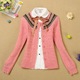 小熊维尼2017春秋款学院风衬衫领假两件少女针织衫纯棉中学生毛衣