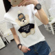 2017夏季新款白色小熊卡通图案圆领修身学生纯棉短袖T恤女上衣潮
