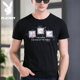 花花公子短袖t恤男 青年修身圆领上衣男士休闲薄款印花黑色体恤潮