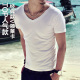 包邮夏季新款时尚修身V领体恤纯色英伦潮男纯棉鸡心领短袖T恤T582