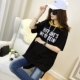 2017夏季时尚字母印花宽松五分袖T恤连衣裙韩版学生卫衣中长裙子
