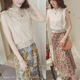 镂空蕾丝上衣套装女夏季2017新款荷叶边高腰雪纺碎花半身裙两件套