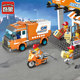 启蒙城市拼装积木拼插快递车公交车警车叉车压路机清扫车益智玩具