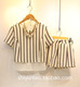 夏季新款韩版女装短袖蝴蝶结系带条纹上衣+裤裙两件套休闲套装 女