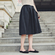 CHERRYBOOM 独家定制PU复古百褶皮裙秋女中长半身裙高腰蓬蓬伞裙
