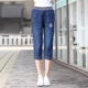 初中女生牛仔七分裤高中学生夏裤宽松紧腰带直筒中裤夏季胖少女裤
