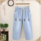 初中学生七分裤高中女生夏季牛仔裤宽松紧腰带薄款直筒少女裤夏装
