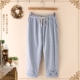 初中女生七分裤高中学生休闲中裤夏季宽松紧腰带条纹阔腿少女夏裤
