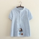 初中女生短袖衬衫高中学生夏季条纹卡通可爱宽松胖mm半袖少女夏装