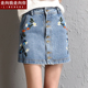 2017春夏款牛仔短裙女半身裙绣花刺绣民族风排扣A字裙牛仔裙高腰