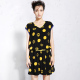 newbefore2017夏款 欧美大码波点印花雪纺无袖V领中长款连衣裙 女