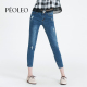 Peoleo飘蕾新款秋冬装水洗磨破牛仔裤女装修身长裤子小脚裤铅笔裤