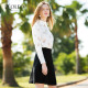 【商场同款】Peoleo飘蕾2017春装新品白色条纹翻领衬衫七分袖衬衣