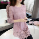 2017春装新款韩版修身蕾丝拼接薄针织衫假两件套头毛衣女打底衫潮