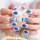 新品上市 华丽宝蓝闪钻新娘美甲假指甲成品 指甲贴片 背胶款甲片